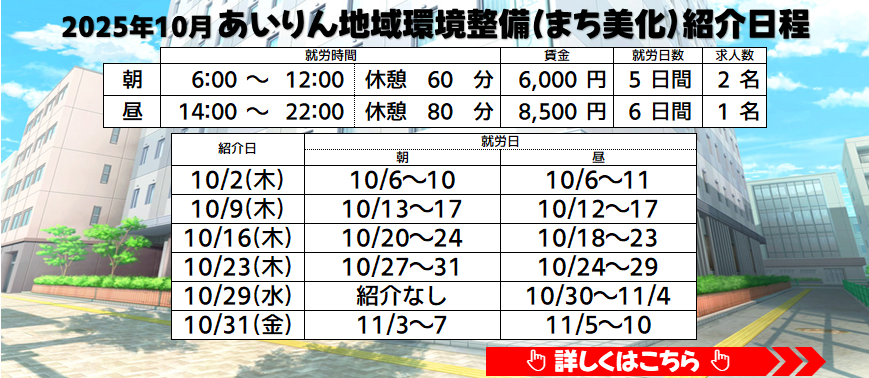 - その他 あいりん地域環境整備事業(まち美化パトロール)のお知らせ(10-11月)