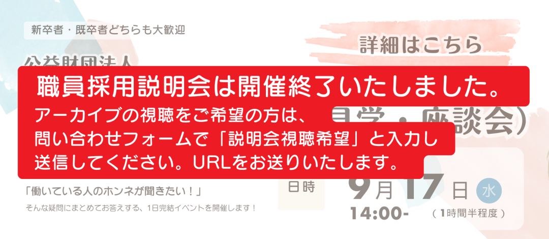 お知らせ職員採用説明会(兼 見学・座談会)を実施します!