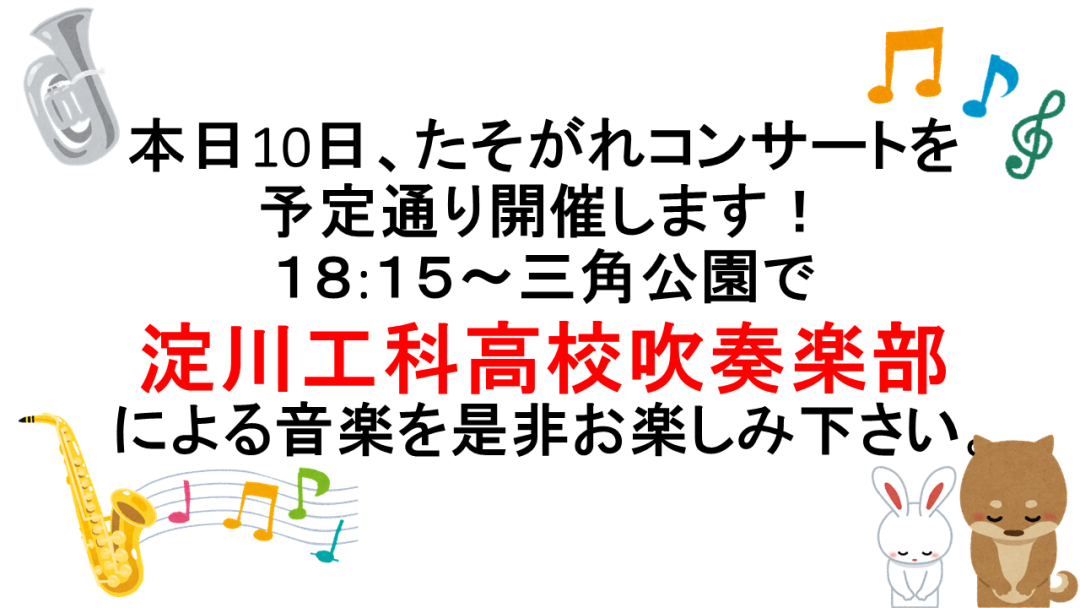 お知らせ【予定通り開催します!】「たそがれコンサート」開催のお知らせ(9/10)